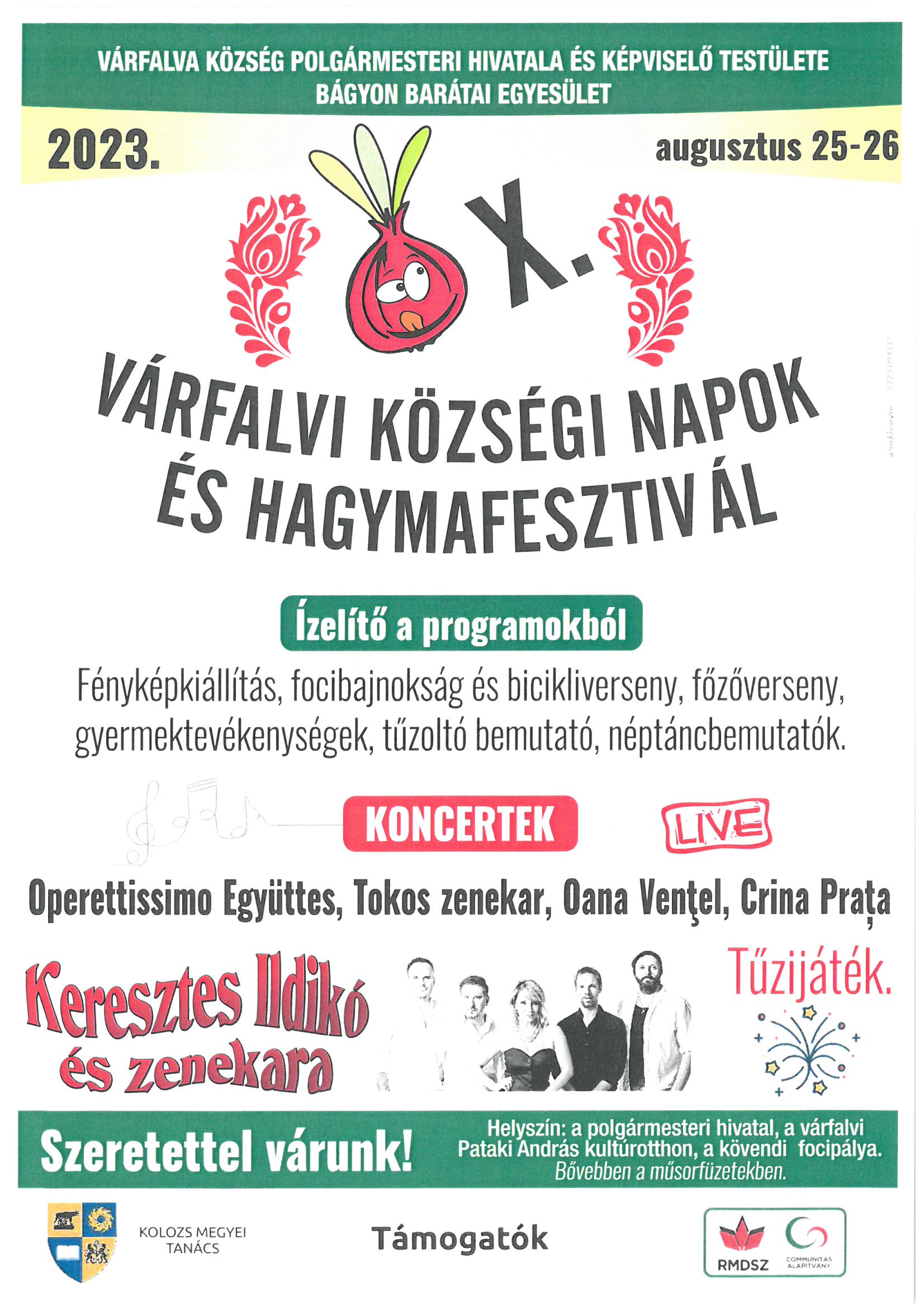 Ha augusztus, akkor községi napok! Idén augusztus 30-szeptember 1 között, hetedik alkalommal lesz megszervezve a Várfalva Községi Napok és Hagymafesztivál.